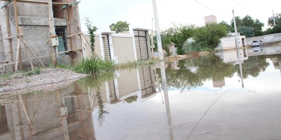‘No pude salir de casa, simplemente. Me quedé encerrada casi todo un día‘, graficó Cristina de León, vecina que vive en la última vivienda de calle Las Palmeras y que se inundó tras las últimas lluvias. En una zona top de Rivadavia, en el barrio Natania XVII, una cuadra se convirtió literalmente en un pequeño estanque pues se encuentra en desnivel y no tiene salida debido a una pared que la atraviesa perpendicularmente. Como no es la primera vez que pasa, los León, que son los más perjudicados, dijeron que analizan recurrir a la Justicia para pedir que modifiquen el nivel de la calle. Desde la Municipalidad de Rivadavia señalaron que analizarán la situación pero que como primera medida harán cunetas.