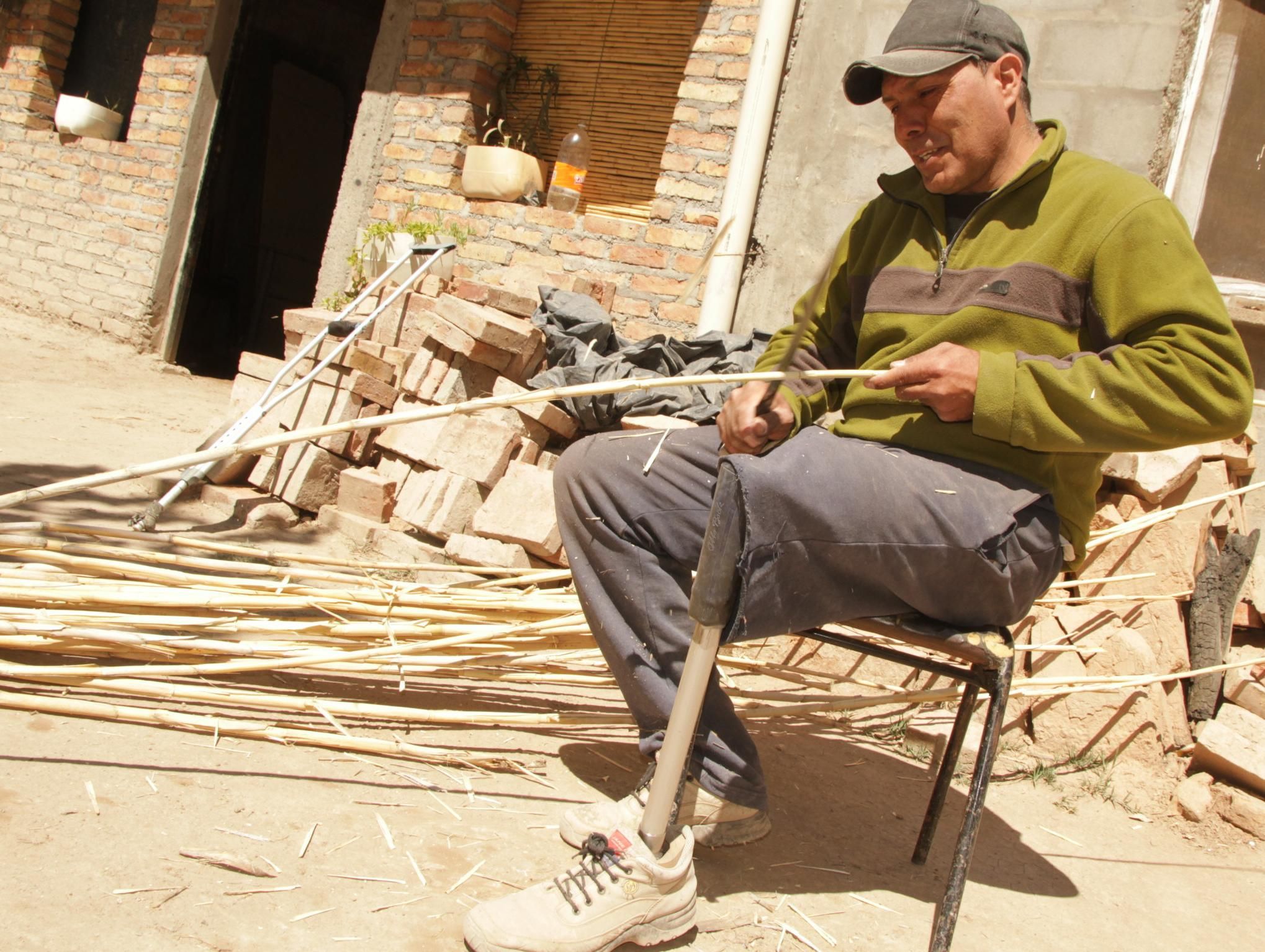 Por las tardes, Hugo sigue trabajando. Uno de sus hermanos le deja las cañas cerca de su silla, pues él solo no las puede trasladar y las limpia una a una. Luego las lleva hasta el patio de la casa, donde ayuda a hacer los cañizos que su hermano vende. "Esta otra changuita me ayuda a subsistir y a poder trabajar. Los ratos que tengo libre me gusta hacer ejercicio. Hay veces que hago flexiones de brazos en los árboles de la vereda y otras veces salgo a caminar. Un día con muletas y otro sin ellas, para terminar de acostumbrarme", concluyó.