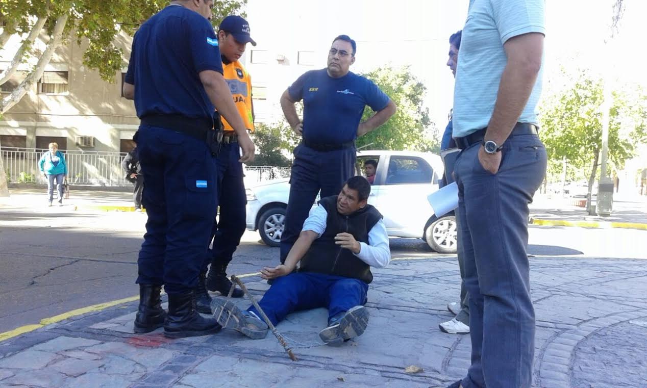 Las personas que pasaban por allí no fueron indiferentes a los gritos desesperados del hombre que no podía contener su dolor luego de quedar enganchado con uno de los fierros mal colocados que sobresalen a la superficie de la rotonda ubicada en Central y Alem, y que nunca fueron cortados.