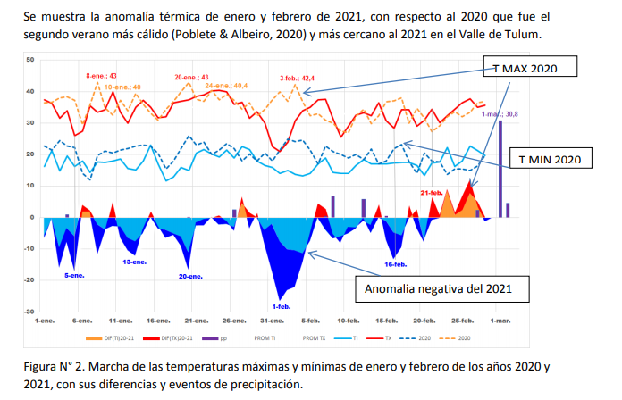 Para finalizar analizó, "en general en estos dos meses del verano sanjuanino de 2021 se aprecia la marcada anomalía negativa tanto de temperaturas máximas como mínimas".