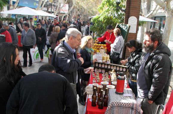 En la mañana de ayer, sobre la Peatonal sanjuanina se realizó el cierre de la Cuarta Edición de la Semana de la Miel con la instalación de stands de venta y degustación, y en cuestión de cuatro horas la gente arrasó con más de 2.000 kilos del dulce, además de otros productos apícolas como cosméticos o polen, procedentes de varios departamentos de la provincia. La miel fue la estrella y se vendió a 60 pesos el kilo, según acordaron entre los 25 productores que llegaron a la exposición que organizó el Ministerio de Producción y que este año por primera vez y con éxito se exhibió en el centro de la ciudad.