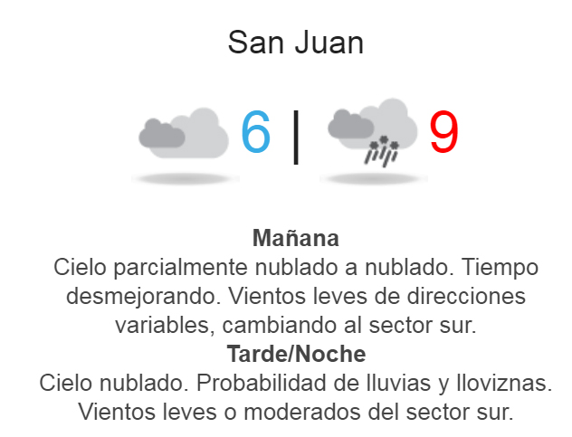 El Servicio Meteorológico Nacional dio detalles de cómo estará el tiempo en San Juan este jueves y viernes con el ingreso en pleno de la ola polar que fue anunciada.