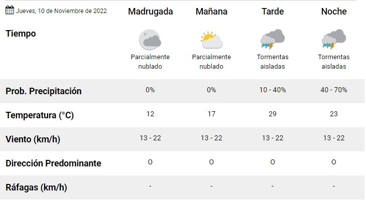 Además, otro dato saliente es que las nubes serán protagonistas de las siguientes jornadas, ya que los días -según el SMN-, estarán parcialmente nublados, mientras que rige pronóstico de tormentas aisladas para la tarde del miércoles, para la tarde y noche del jueves y para todo el viernes.