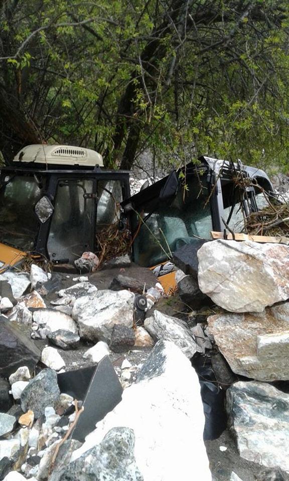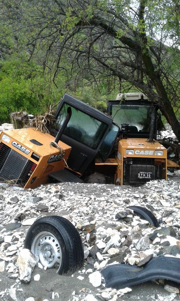 DIARIO DE CUYO accedió a seis fotografías donde se observa el devastador paso del agua, luego convertido en lodo, que dejó un camión y dos máquinas sepultadas.