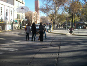 San Juan, 27 de agosto.- Durante la jornada de ayer, DIARIO DE CUYO mostró un relevamiento realizado sobre el peligro que implica para los peatones cruzar las calles que rodean a la Plaza 25 de Mayo.