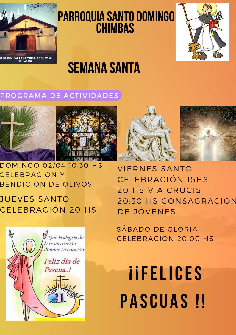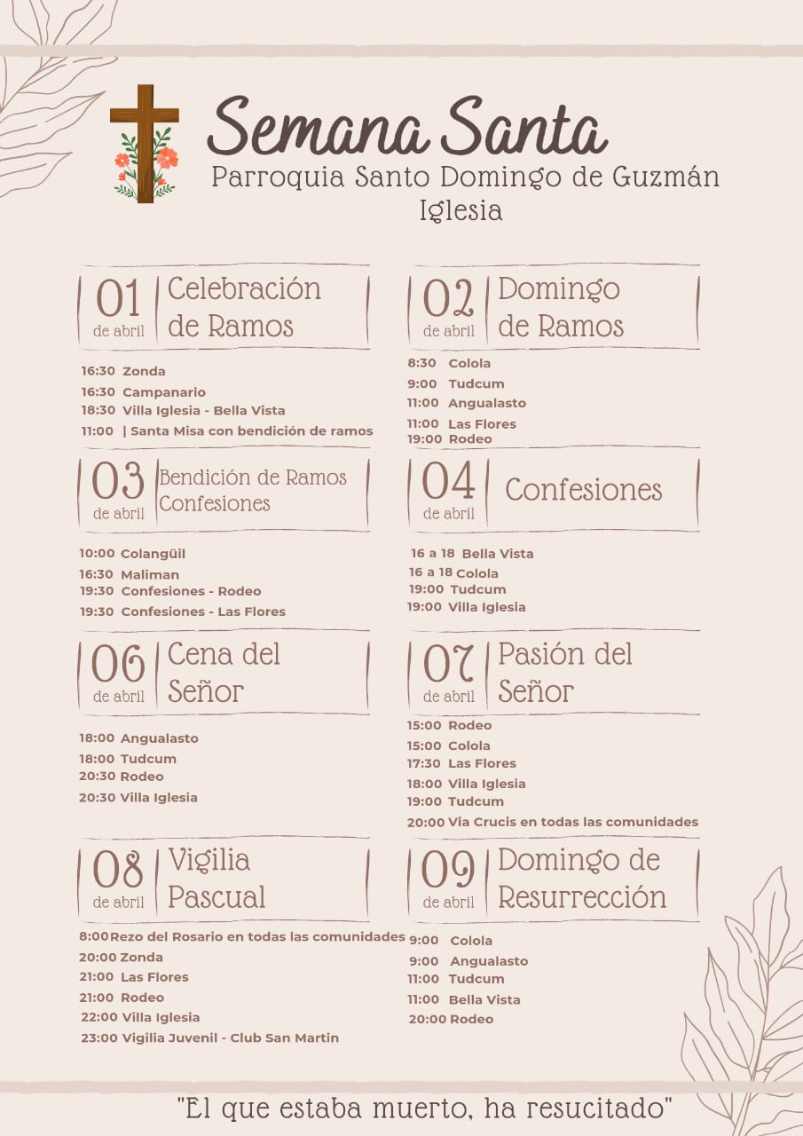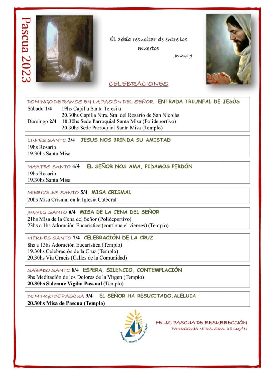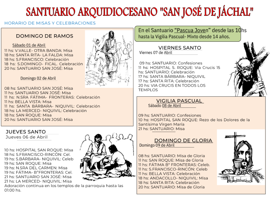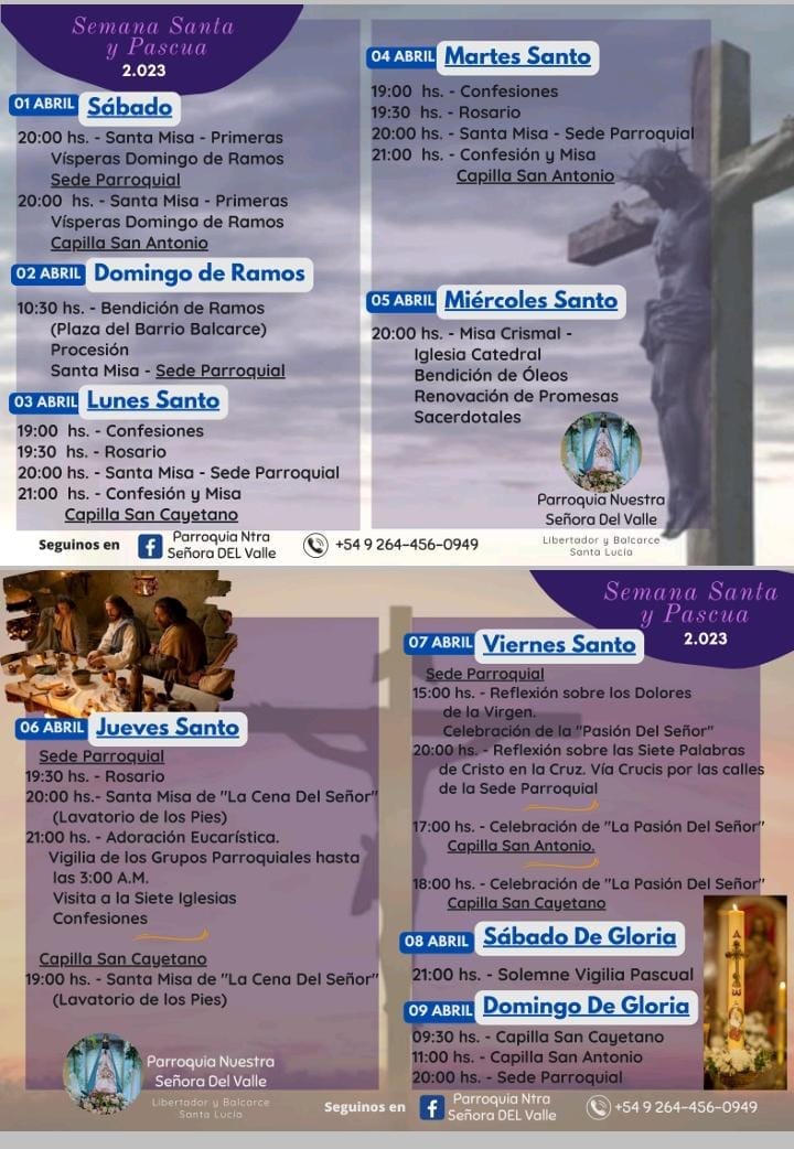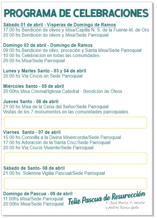– Domingo 2 de abril: 10hs bendición de ramos plaza Alto Valle.