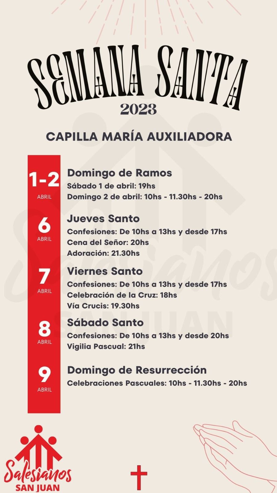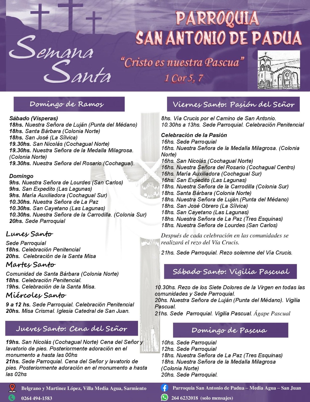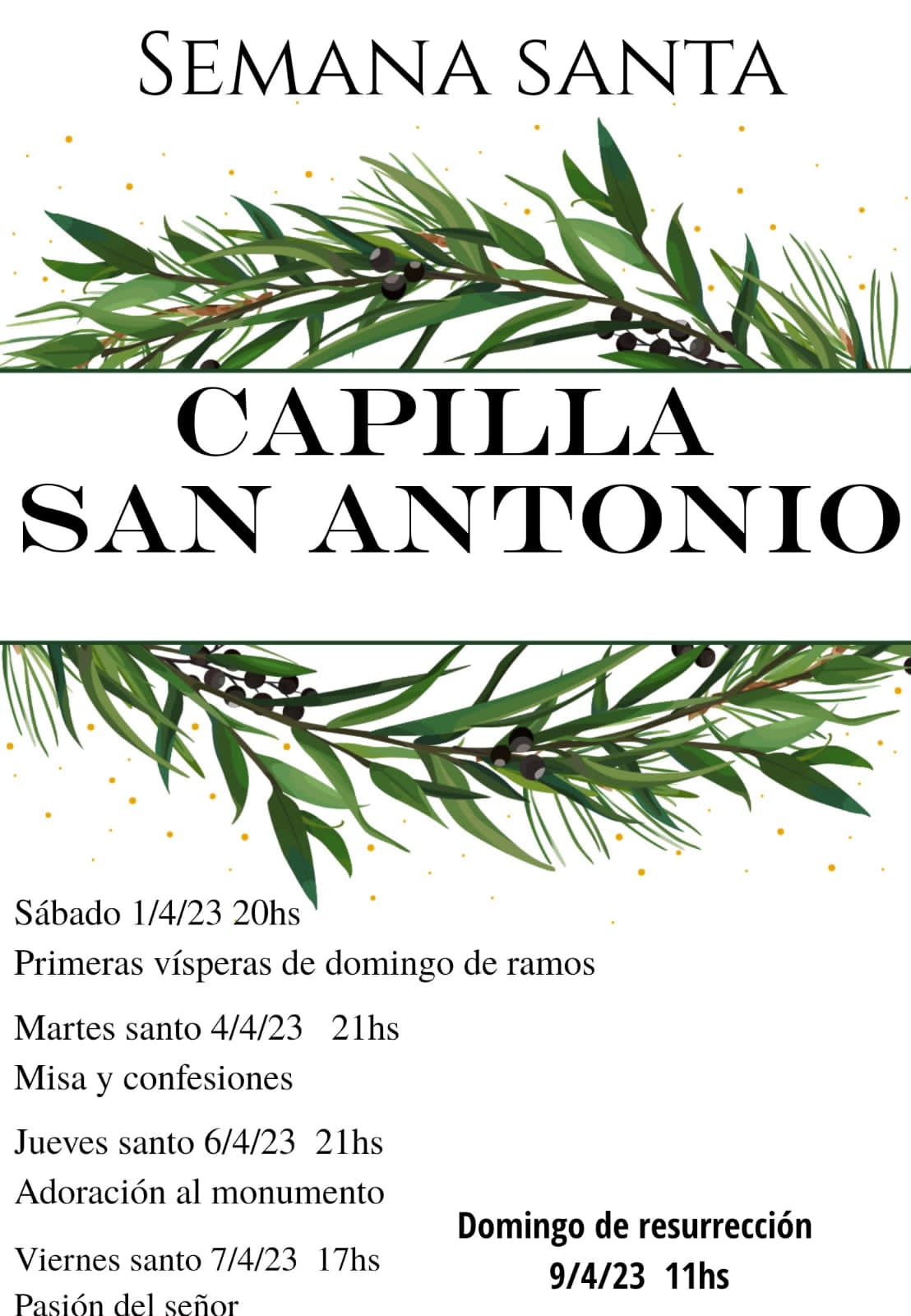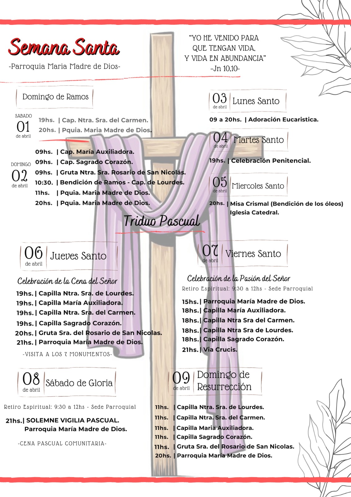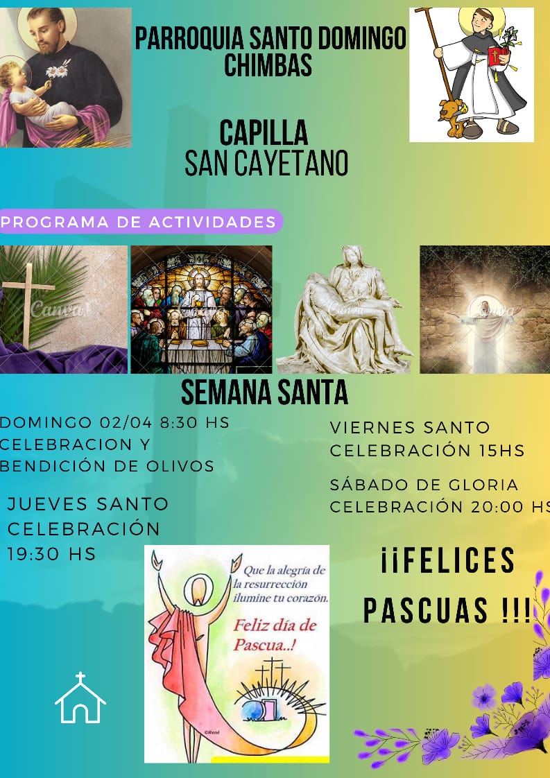 – Domingo 2 de abril: 10hs bendición de ramos plaza Alto Valle.