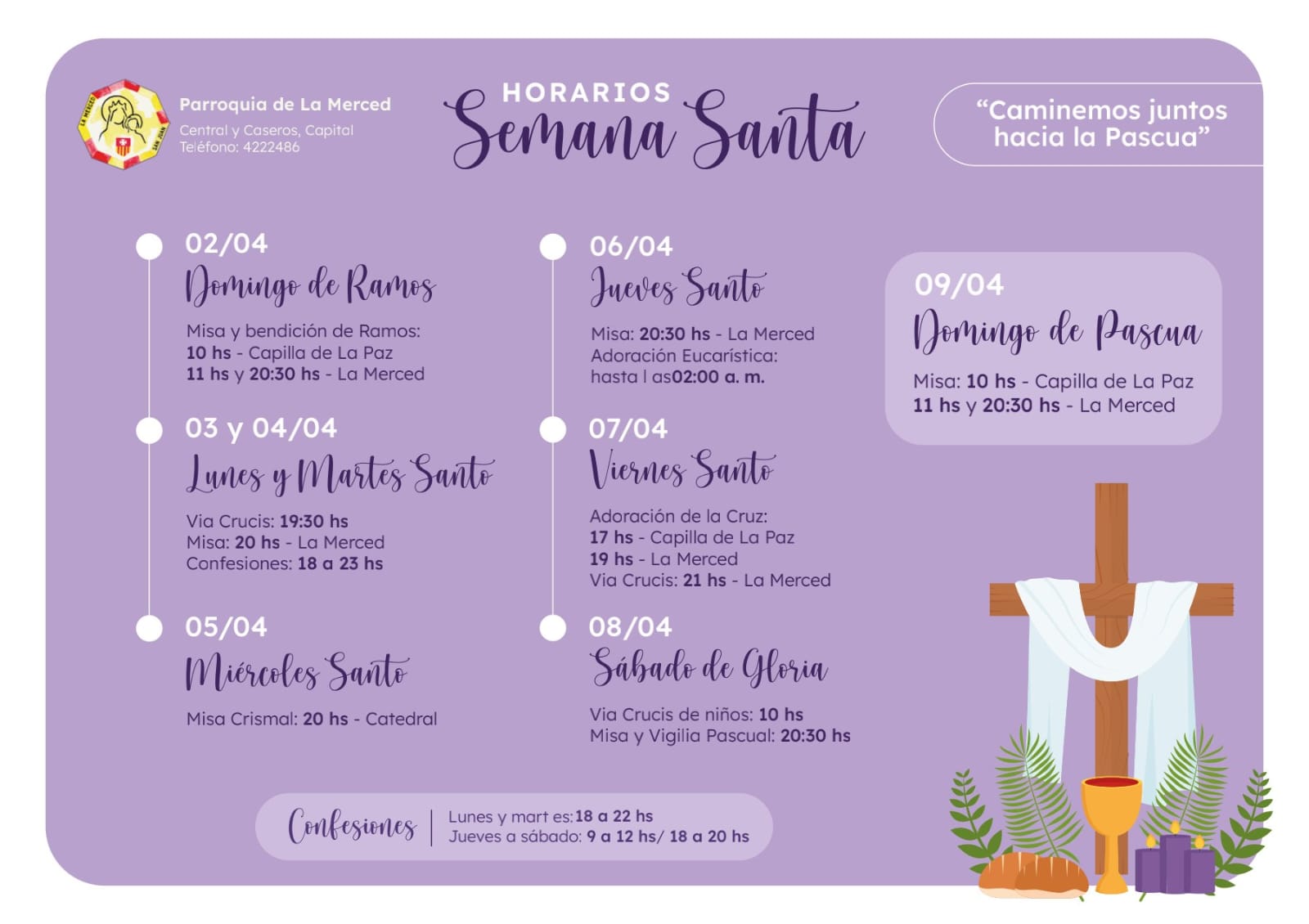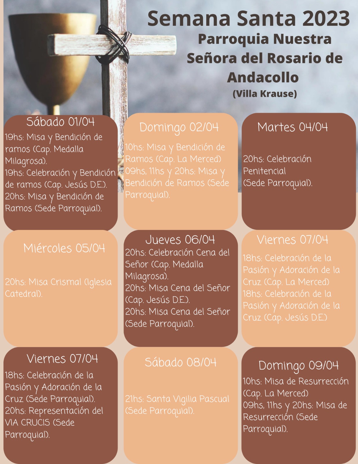 – Sábado 15 de abril: 19hs 9° día de novena templo parroquial.
