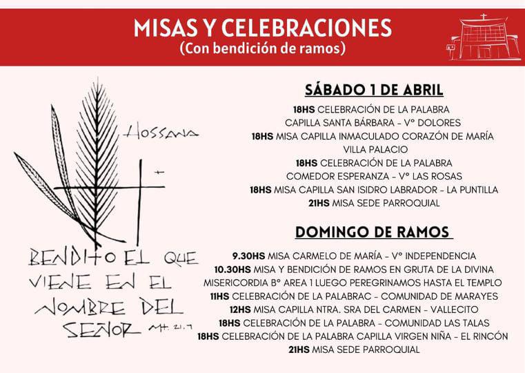 – Sábado 1 de abril: 18hs bendición de ramos en el barrio Obrero.