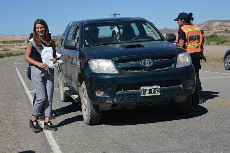 En el inicio del fin de semana largo, un grupo de personas encabezadas por el intendente Marcelo Marinero y Cristina Ramos García, Reina departamental de la Semilla y la Manzana recibieron a los turistas y les entregaron folletería y recuerdos del departamento.