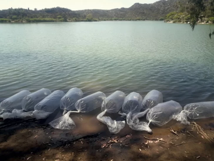 La Secretaría de Ambiente, a través del Parque de la Biodiversidad realizó este viernes una importante siembra de peces en el dique San Agustín, departamento Valle Fértil.