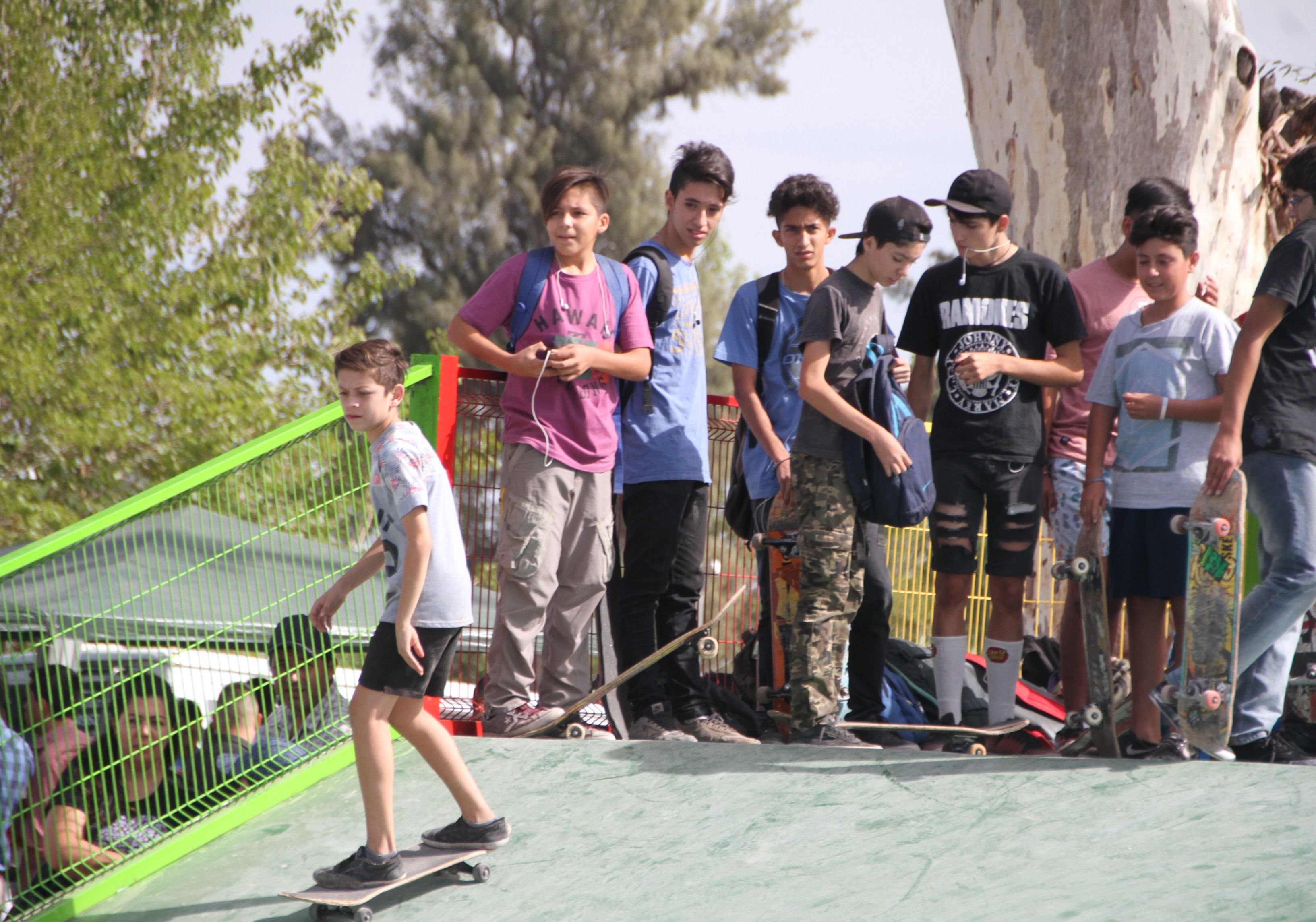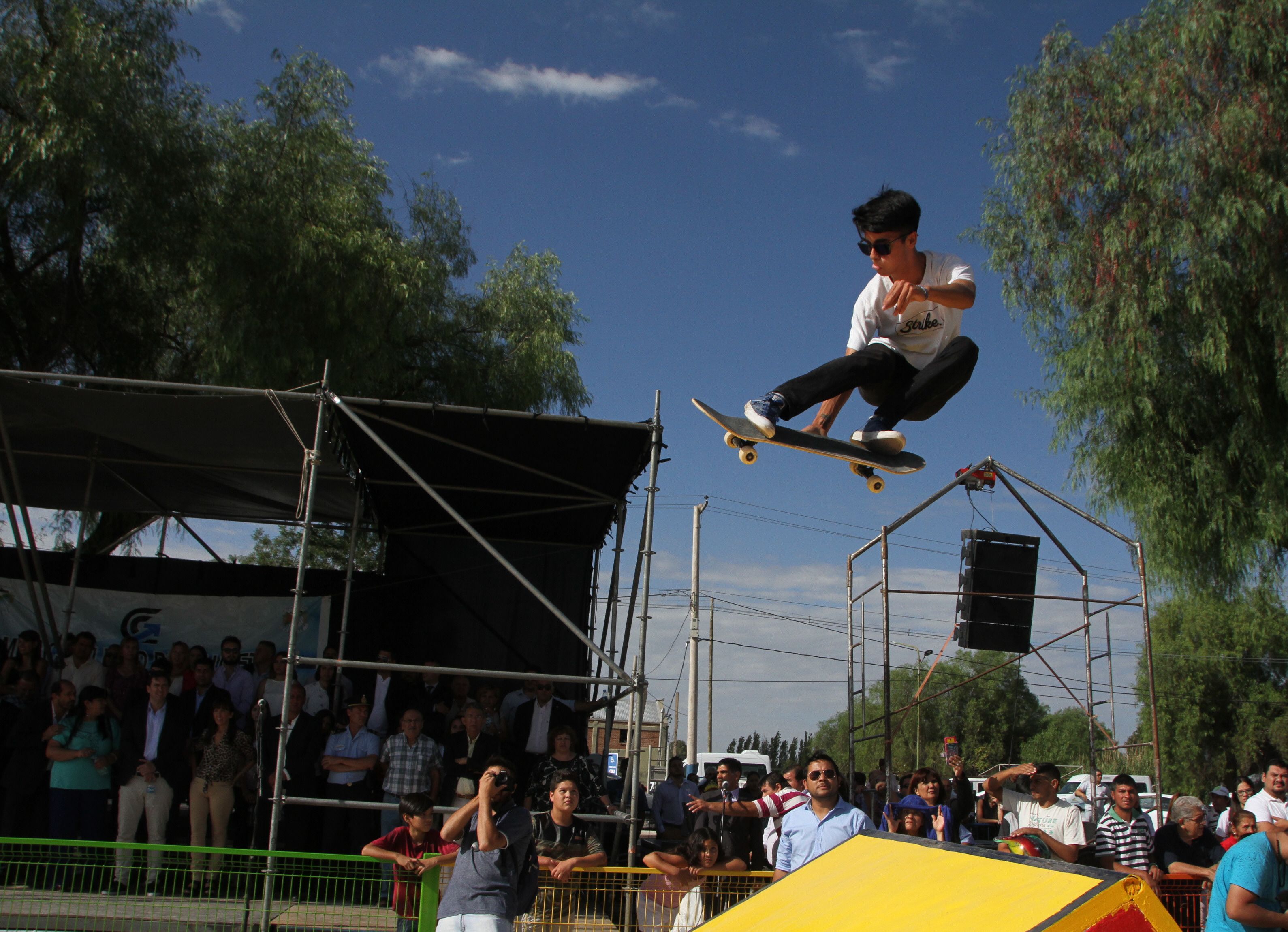 La ansiedad de los chicos por probar el skatepark fue una constante en un acto repleto de particularidades. Al punto que cuando las autoridades, encabezadas por el intendente Julián Gil, el diputado nacional Eduardo Cáceres y los subsecretarios de Alto Rendimiento y de Deporte Social de la Provincia, Alberto Naveda y Edgardo Rodríguez respectivamente, recorrieron el parque, ingresaron también los skaters profesionales invitados para probar las características y detrás, los chicos de Caucete que fueron al acto, que estaba previsto a las 8 de la mañana. Así, no sólo que no esperaron a las clínicas de la tarde o las competencias de la noche, sino que mientras se desarrollaban diferentes números artísticos (dos academias de folklore, otra de rumba y finalmente una de zumba), los chicos ya habían copado el lugar.