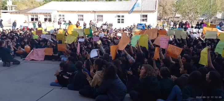 A eso de las 17 de este lunes, cientos de alumnos de la de Comercio decidieron no dejar pasar por alto este grave episodio y organizaron una "sentada" para reglexionar sobre lo sucedido junto a docentes, directivos y algunos padres que se acercaron.