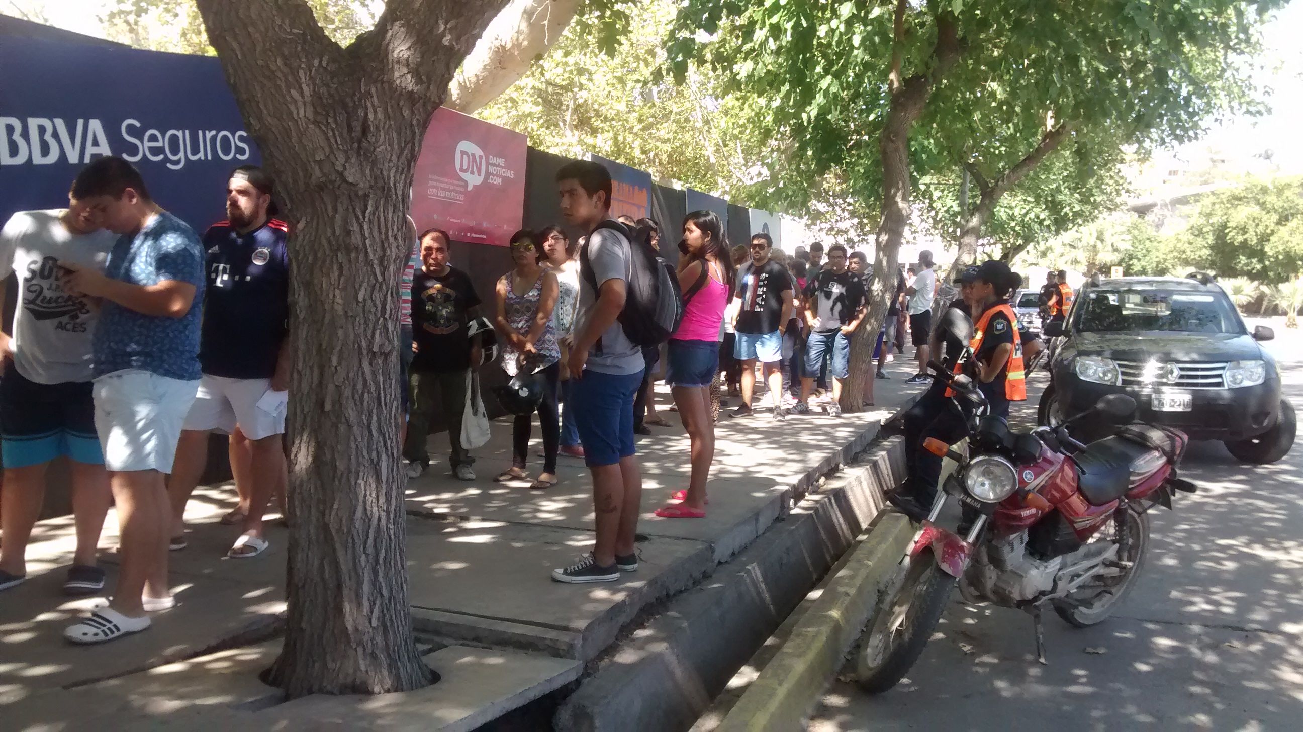 Ya sea porque tenían compromisos creados para esta noche o porque directamente ya perdieron las ganas de asistir al recital, cientos de sanjuaninos hicieron fila para llegar a las boleterías ubicadas en la vereda del Parque de Mayo con el fin de pedir que les devolvieran el dinero de la entrada que habían pagado para ver a Maná el viernes por la noche, show que se frustró el viento y la lluvia.