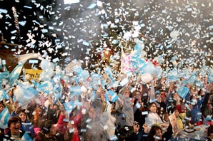 San Martín se impuso con un aplastante 71,1 por ciento sobre un 28,9 de los misioneros, pese a que tuvo que enfrentar un repetido corte de señal en la transmisión en vivo que apenas dejó mostrar una pizca de la gran fiesta que se había armado y las lágrimas de emoción de Tinelli tras la presentación de Aristóbulo del Valle.