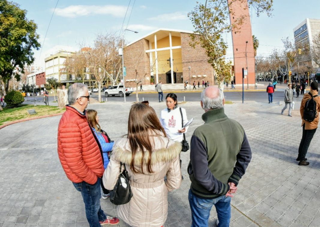 Con un guía que brinda datos particulares de los sitios visitados, los visitantes van fotografiando la Casa Natal de Sarmiento, la celda donde pernoctó San Martín y los salones del edificio del Club Sirio Libanés.