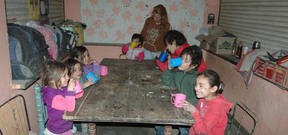 Como si estuvieran jugando al gallito ciego, los niños tantearon la mesa hasta encontrar el jarro con leche. La única luz del lugar es la que entraba por una rendija de la persiana. Se trata de los 7 hijos, de entre 1 y 10 años, de un matrimonio que por una semana deambuló por un baldío y una plazoleta de La Bebida, y otra, por la Quebrada de Zonda porque no tienen dónde vivir. Hasta ayer usurparon el edificio abandonado de una proveeduría, al lado del reservorio de agua de la Quebrada de Zonda, en Rivadavia. Y finalmente el municipio de Rivadavia les prestó un lugar provisorio frente al camping municipal.