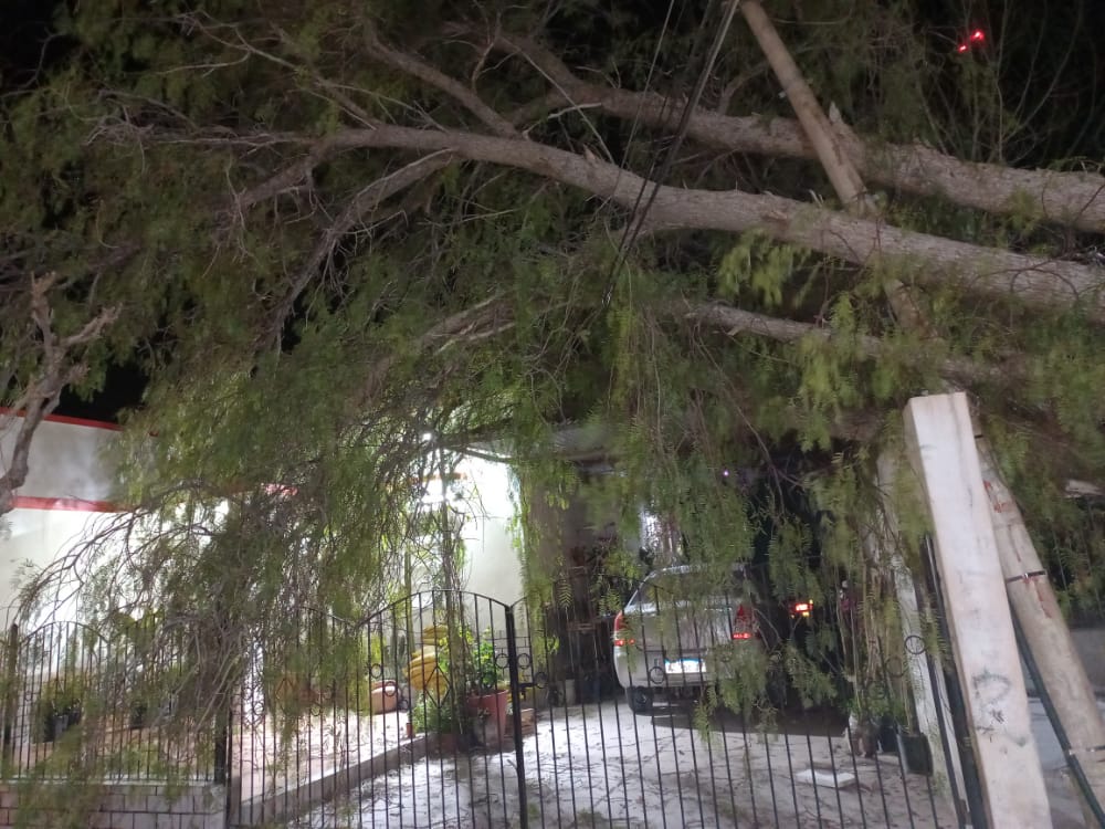 Por las importantes ráfagas se registraron caídas de ramas y postes de alumbrado público. Además, se vio resentido el servicio eléctrico en algunos sectores.