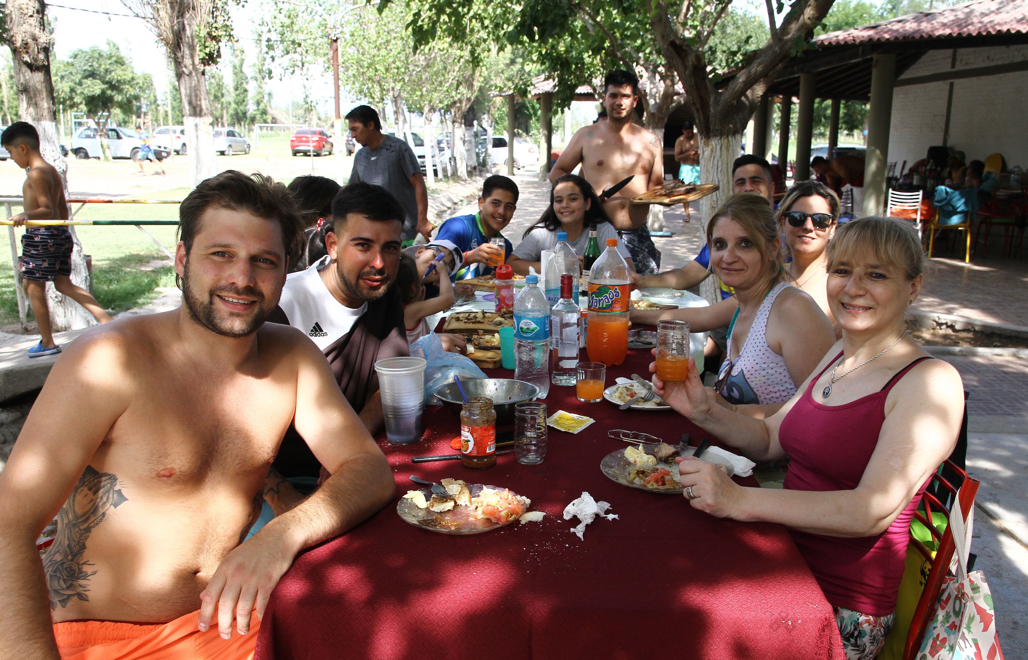 En los campings y clubes, el olor a asado fue moneda corriente, durante todo el día. Es que, cada familia almorzó a la hora que le pareció conveniente. Lucio Ponce, de Chimbas comentó que ellos llegaron al balneario Las Viñas, en Santa Lucía pasada las 14.30 y que por eso cerca de las 16.30 recién estaban terminando de poner la mesa y aliñar las ensaladas para almorzar en familia. "Nos metimos a la pileta con los niños cuando llegamos y se nos pasó la hora. Igual, eso no importa porque mañana es domingo y no tenemos que trabajar, por eso ahora estamos más que tranquilos", agregó el hombre, mientras que un grupo de jóvenes de Rivadavia, dijo que ellos llevaron asado, pero que a las 19 iban a prender el fuego para comer antes de volver a sus casas.