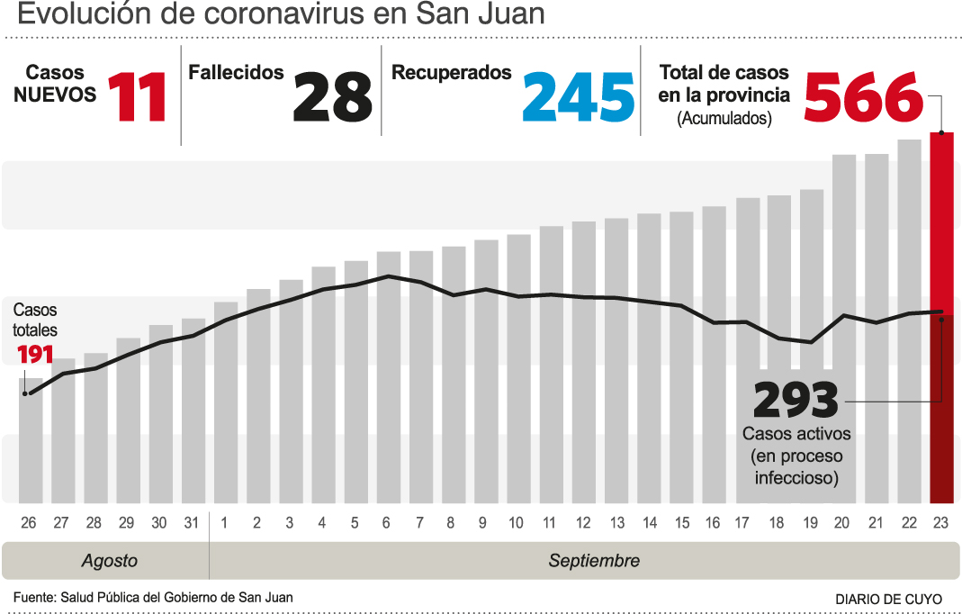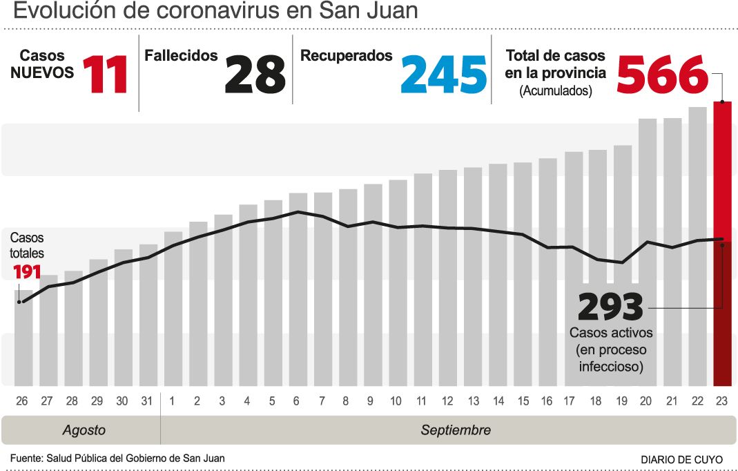 En la consideración se desprende también una arista importante en el trabajo de investigación puesto que si bien hay más de medio millar de positivos acumulados en la provincia desde marzo, la tercera parte del total de los departamentos aún no registra casos, como Zonda, Ullum, Calingasta, Iglesia, Albardón y Jáchal. En contraposición, Caucete y el Gran San Juan reúnen más del 85% de los contagios.