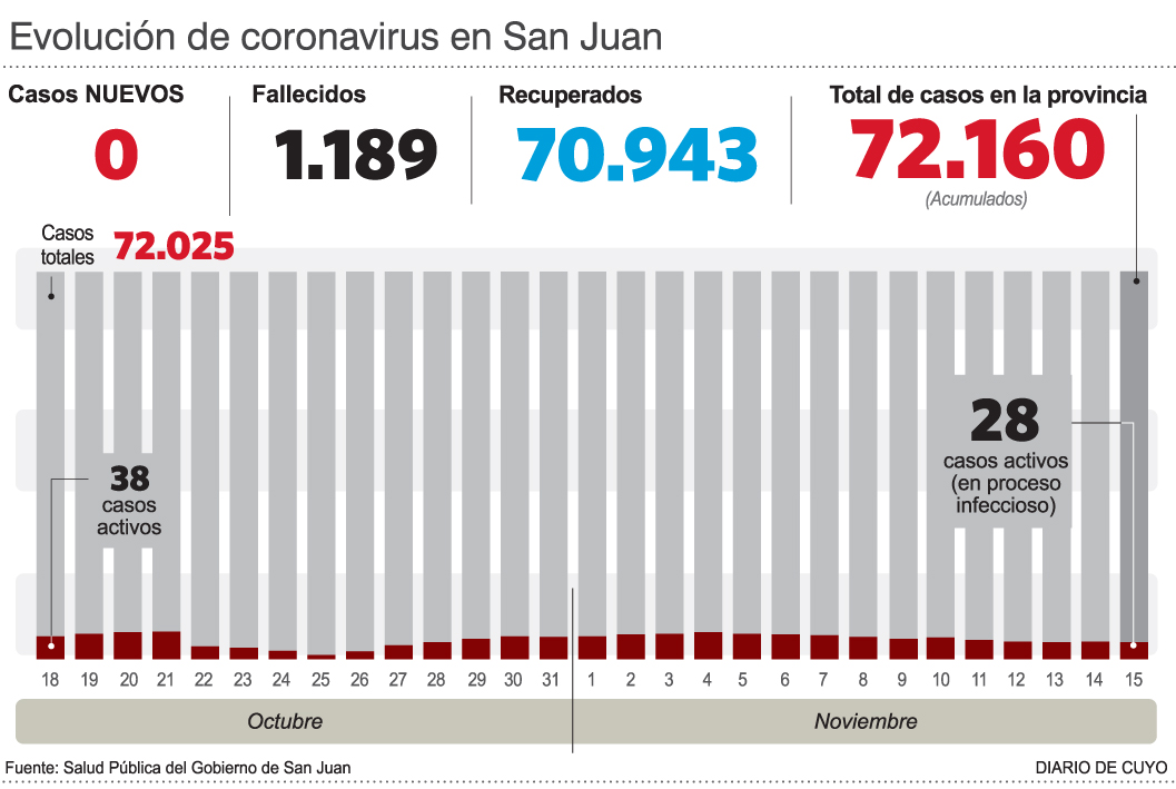 Sucede que octubre concluyó con 222 contagios mensuales, lo que representó una cifra inferior incluso a la de agosto de 2020, cuando surgió el brote en Caucete.