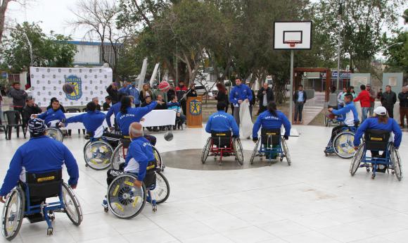 Desde temprano, la plaza de Chimbas se convirtió en un estadio de básquet. Los aros en el centro del espacio verde, las sillas para los espectadores y los jugadores uniformados hicieron que el lugar luciera diferente. Es que, los miembros del equipo de básquet en silla de ruedas de San Juan y de la agrupación Vida Independiente hicieron demostraciones de deportes adaptados. La gente los ovacionó en todo momento y algunos hasta se animaron a sentarse sobre las sillas de ruedas para jugar.
