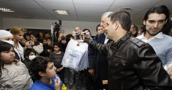 Desde temprano los chicos con cáncer se ubicaron en el SUM del hospital a la espera de ver a los jugadores, aunque no tuvieron suerte. Es que sólo el presidente de Racing, Gastón Cogorno, y el vicepresidente 3ro de Boca, Rodolfo Ferrari, concurrieron a la cita. De todos modos, los chicos superaron la decepción ni bien las autoridades de ambos clubes repartieron regalos, tanto los que trajeron los clubes, como los que recaudó la Peña de Racing local. Los hinchas de la Academia donaron ropa de abrigo, bolsones de pañales y juguetes para los niños.