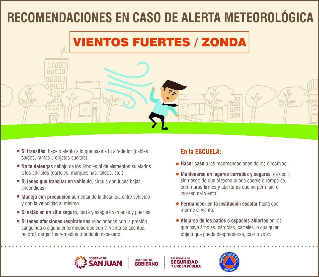 La Dirección de Protección Civil emitió un alerta por viento Zonda en zona de cordillera y precordillera de San Juan con probabilidad de descenso al llano con vientos regulares a partir de las 15 horas.