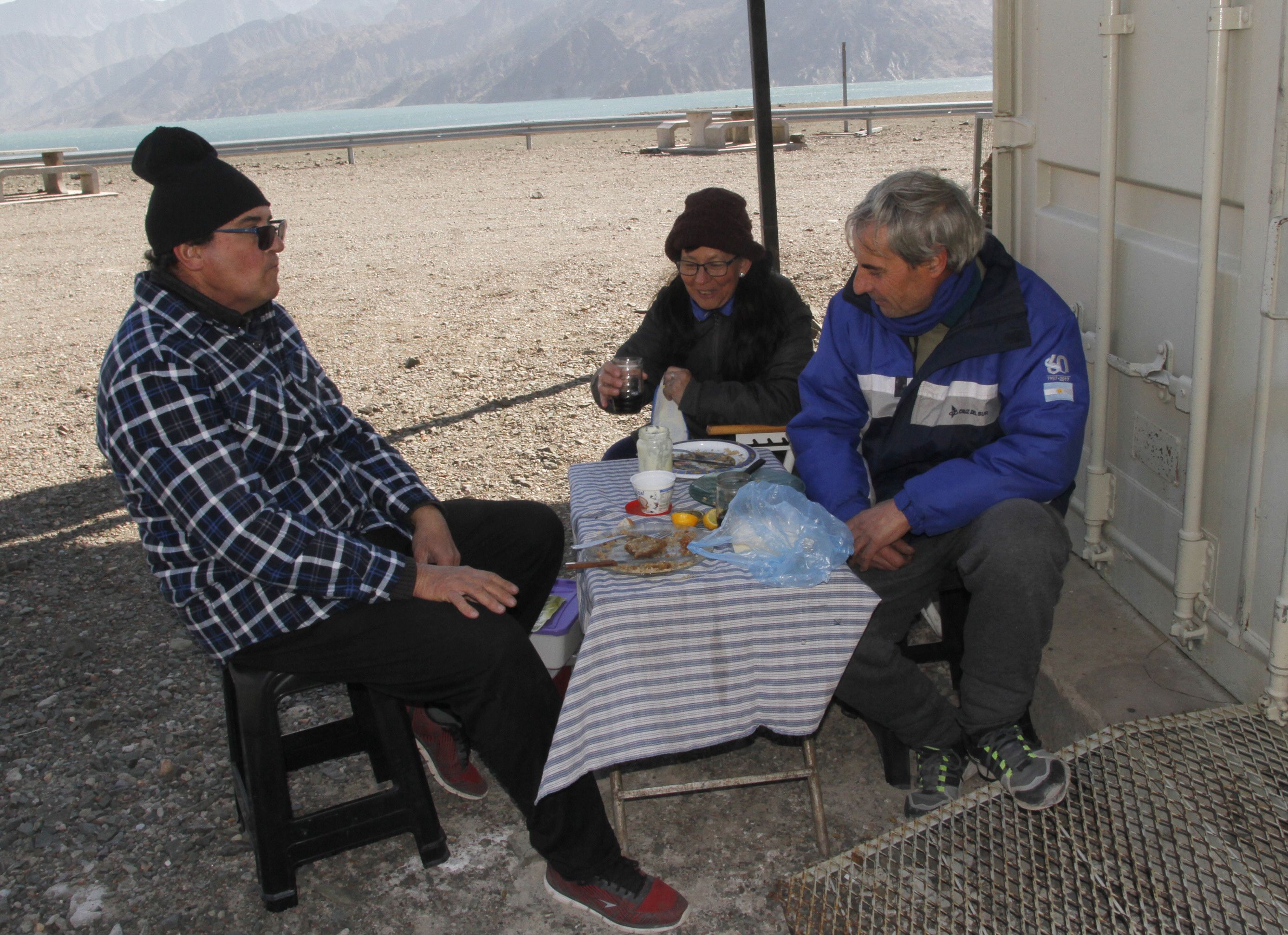 Adriana Álvarez llegó desde Rawson al dique junto a Mario Pareja y Marcelo Teruel. "Vinimos bien preparados y trajimos unas cañas de pescar para disfrutar varias horas", dijo la mujer y comentó que llevaron almuerzo y el mate para soportar el frío.