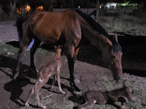 Un episodio poco común se vivió en los últimos días en Calingasta, cuando una yegua dio a luz a dos potrillos, una situación escasamente frecuente en este tipo de especies.