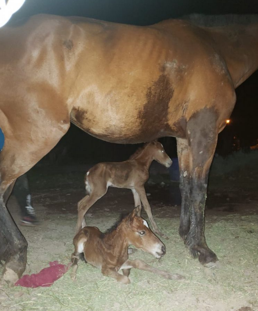 "La trajimos a un potrero y tuvo primero a la potranca que se llama Kenya y es la que está mejor y más activa. Pero la yegua seguía inquieta y salió otro que no era esperado y ese se llama Tanta. Por suerte todavía sobrevive es más pequeño que la otra", detalló la chica.
