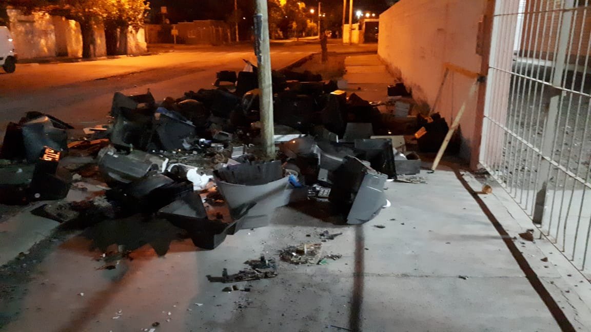 Vecinos de la zona mostraron enorme sorpresa al toparse esta mañana con decenas de televisores quemados, en la vía pública, en pleno corazón de Rawson.