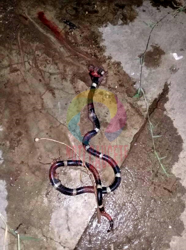 Una víbora falsa coral (Lampropeltis triangulum) amenazaba con entrar a una vivienda del Barrio Ferroviario, en Pie de Palo, Caucete, pero no pudo hacerlo porque el gato de la familia que habita la vivienda lo impidió. Así lo contó Sergio Ibáñez, quien además dijo que fue su pequeña hija de 8 años la que se dio cuenta de la presencia del reptil.