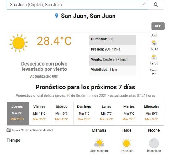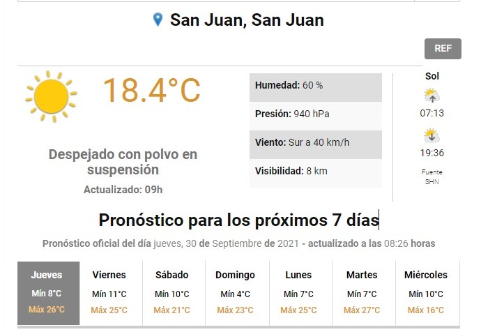 Sin embargo, pasadas las 9 de la mañana el viento comenzó a ser del sector Sur. con una velocidad de 40 kilómetros por hora, y la temperatura bajó a los 18.4°.