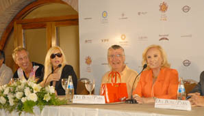 San Juan, 27 de febrero.- Susana Giménez y Mirtha Legrand arribaron a la provincia pasadas las 14. Ambas, junto al gobernador Gioja y a Marley, quien llegó a la San Juan para filmar un especial sobre la Fiesta del Sol, brindaron una conferencia de prensa en el Hotel Del Bono.