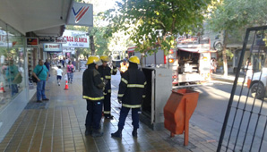 San Juan, 19 de marzo.- Esta tarde el incendio de un tablero de energía en el microcentro llevó susto a los transeúntes de ese lugar y a los comerciantes que vieron humo salir de las instalaciones de Energía San Juan.