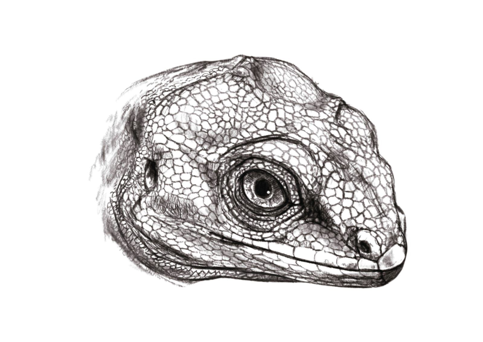 El animal hallado debe haber medido en total unos 15 centímetros de largo, no muy distinto a cualquier lagartija viviente, aunque sólo se haya encontrado su cabeza.