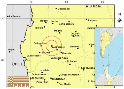 El epicentro se situó 35 km al Noroeste de San Juan; 171 km al Norte de Mendoza; 56 km al Este de Calingasta. La profundidad fue de 108 km. La intensidad fue de I y II en la Escala Mercalli Modificada.