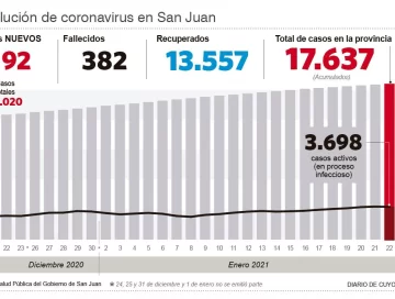 Por otro lado, ayer también se informó un nuevo fallecimiento por Covid en la provincia. Se trata de un pocitano de 54 años que estaba internado en el Hospital Privado. Con el suyo, los fallecimientos locales desde el inicio de la pandemia ya ascienden a 382.