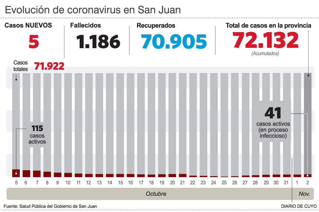 En cuanto a los casos activos, hubo otro aumento puesto que ahora son 41; mientras que los recuperados se acercan a la barrera de los 71.000 ya que totalizan 70.905.