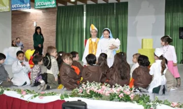 Esperaron un poco impacientes, pero respetando su lugar en la fila, a que terminaran los discursos y se retiraran las banderas. Con su escasa estatura, parecían personajes salidos de un cuento. Los primeros, vestidos con una túnica marrón y llevando en sus manos pañuelos de color amarillo y naranja, fueron los encargados de representar el terremoto que asoló a San Juan en enero de 1944. Y lo hicieron muy bien, desparramando las cajas de cartón que como si fueran edificaciones, habían sido colocadas en el centro del escenario. Ahí apareció el resto de los personajes: enfermeras, bomberos y gente del pueblo, todos con sus manitos en la cara en señal de asombro y tristeza. Fue la representación artística que los chicos de Nivel Inicial del Colegio Nuestra Señora de Tulum, de la Universidad Católica de Cuyo (UCC), hicieron para festejar el 25to aniversario de los tres colegios que dependen de esa institución.