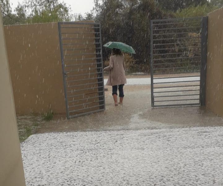 Según indicaron vecinos de la zona, mientras en Media Agua llovía, la zona Oeste del departamento estaba siendo afectada por la tormenta de granizo.