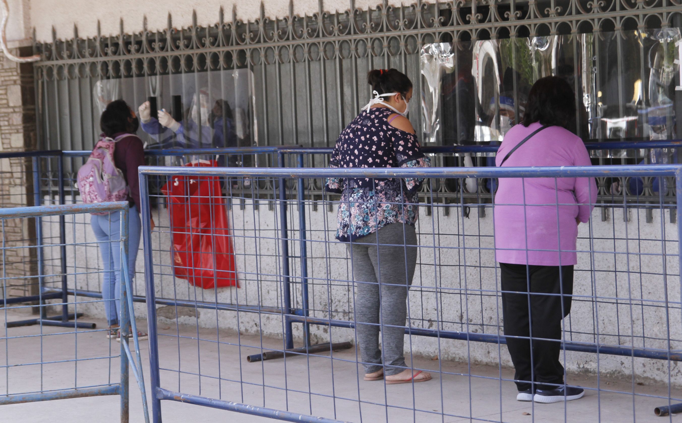 Seguridad. Para evitar el contacto con las personas, en el Estadio Aldo Cantoni los hisopados se hacen a través de una ventana y hay vallas para que la gente respete la distancia.