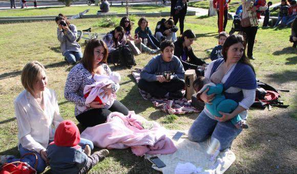 La teteada no fue masiva ni al unísono. A medida que las mamás fueron llegando comenzaron a amamantar a sus bebés, sentadas sobre el césped de la plaza y acompañadas por sus parejas que se encargaron de pegar carteles en defensa del derecho de amamantar a los hijos en cualquier lugar.
