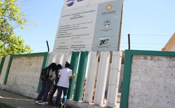 El malestar por no poder despedirse del secundario en un edificio nuevo reina entre los alumnos del último año de la EPET Nº7, en el barrio Aramburu, Rivadavia. La escuela fue inaugurada hace 7 meses pero todavía no la pueden habitar porque están construyendo un salón. Desde el Ministerio de Educación se informó que la obra base está lista pero no quieren que haya obreros trabajando en el mismo lugar que los alumnos. La empresa constructora (Salmax), aseguró que terminará la obra el 14 de diciembre, un día antes de la finalización del ciclo lectivo.