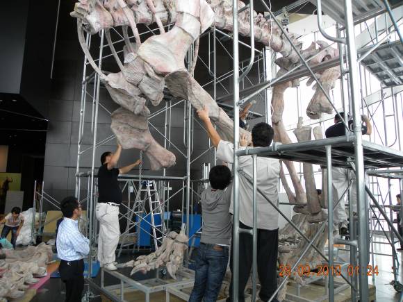 Un equipo de 20 personas colaboró con los dos enviados del Museo de Ciencias Naturales de la UNSJ en el desarme de la muestra, que concluyó ayer, para preparar el transporte de las piezas vía carretera hasta la ciudad de Osaka. Los operarios pertenecen a dos empresas, una especializada en transporte de piezas de museo y la otra en restauración, para proteger y preservar las diferentes piezas durante todo el proceso.
