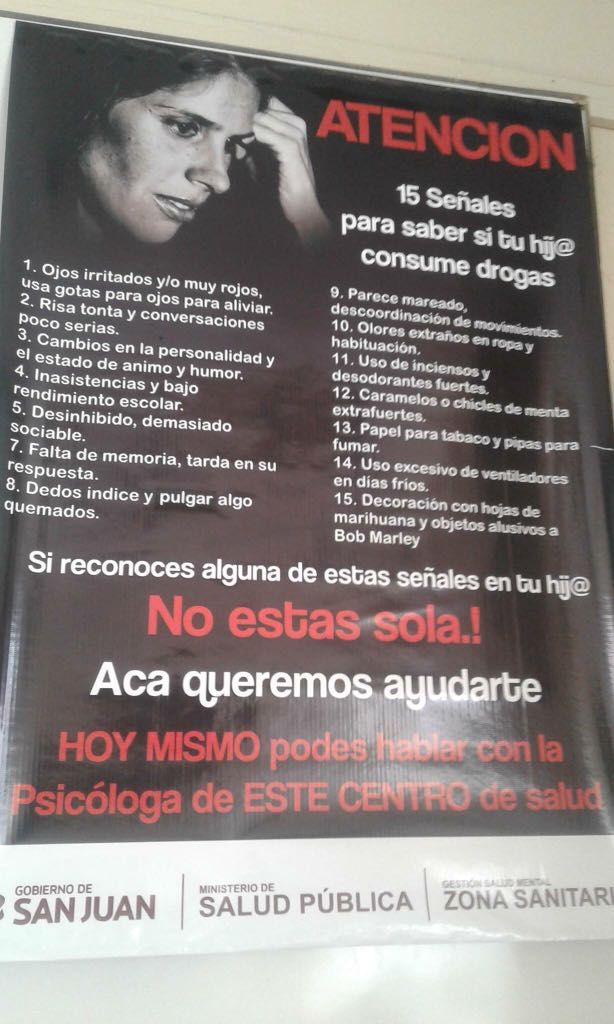 “La campaña -que indica ‘señales para saber si tu hij@ consume drogas’- fue realizada por el equipo de psicólogos que trabaja en el grupo de adicciones de nuestra zona. Se usó palabras sencillas y no técnicas para que las mamás puedan entender los conceptos. Yo no veo irregularidades graves”, aseguró Miguel Díaz Garay, encargado de esa zona sanitaria.