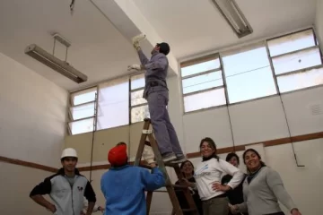 Ayer, mientras unos pintaban las paredes, otros se ocupaban del techo y del pizarrón. Un grupo, rejilla metálica en mano, refregaba mesas y sillas, mientras que personal del Obrador municipal limpiaba un terreno baldío lateral.