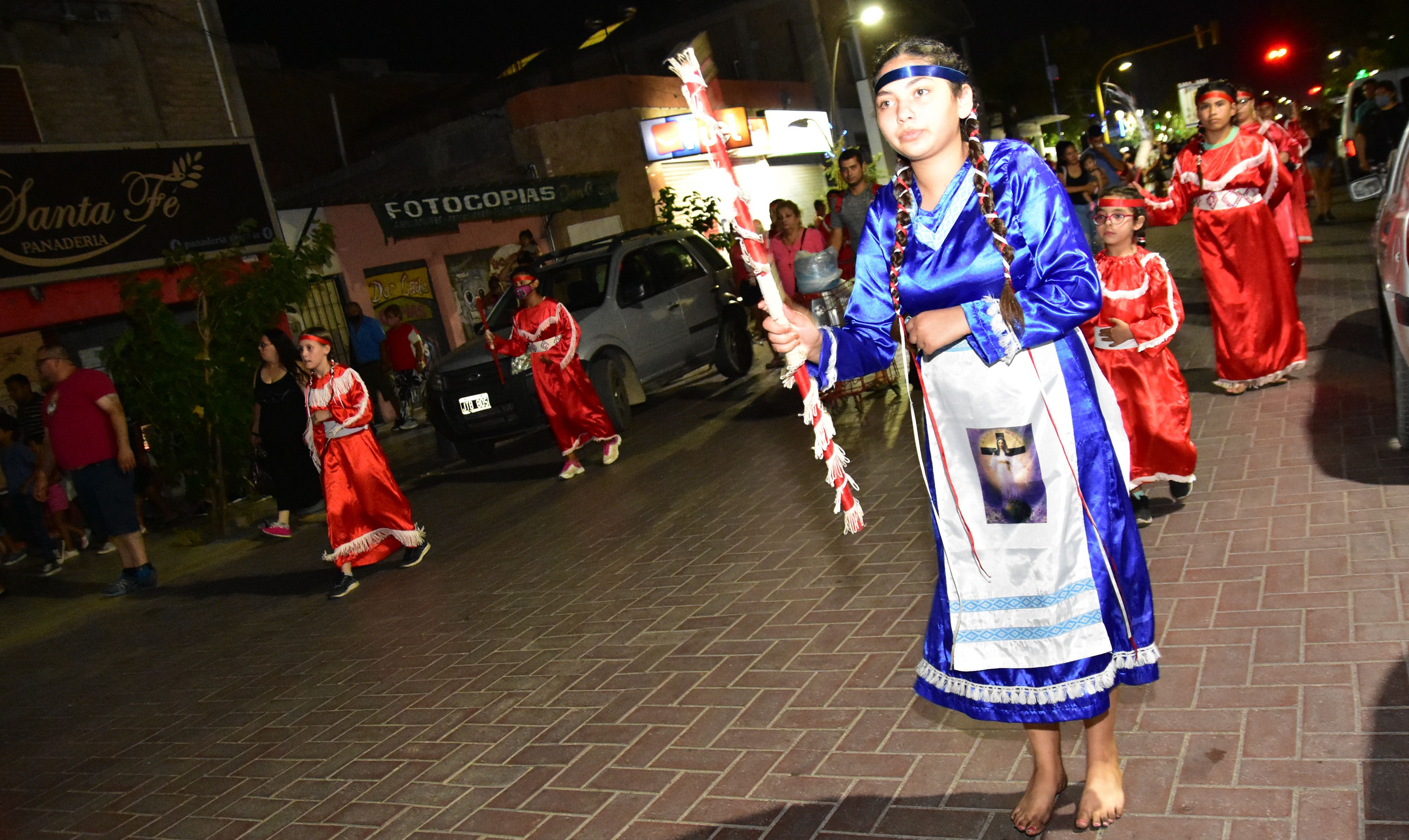 A las 22 en punto arrancó la procesión que se vio desbordada por la cantidad de participantes. Fue encabezada por los danzantes que coparon dos cuadras completas. Tras ellos se ubicaron algunos fieles, especialmente los que fueron con niños y bebés en changuitos, para poder caminar con mayor comodidad.
