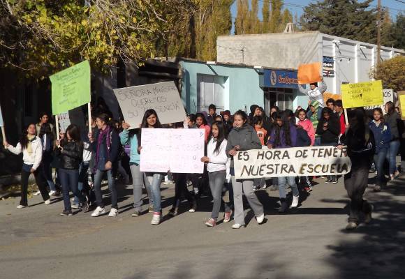 Ayer se cumplió la cuarta jornada sin clases en la Escuela Agrotécnica Cornelio Saavedra en Rodeo, Iglesia, pero con una particularidad. Los alumnos realizaron una marcha con carteles y pancartas para hacer oír sus reclamos. También repartieron panfletos sobre lo que piden.